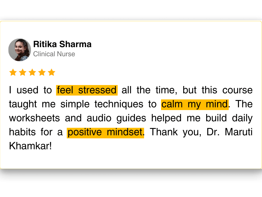 This course focuses on general well-being. For serious mental health issues, consult a doctor, therapist, or seek advice from our expert.
